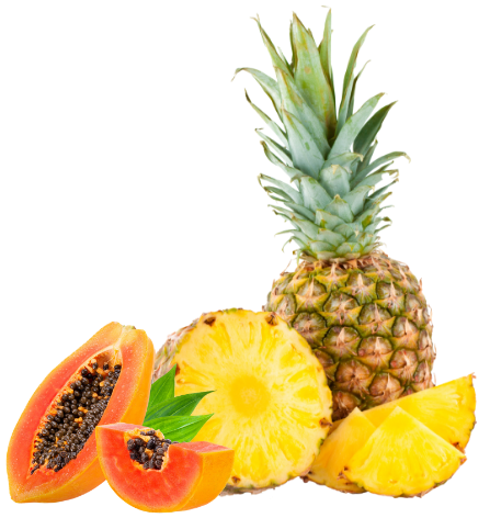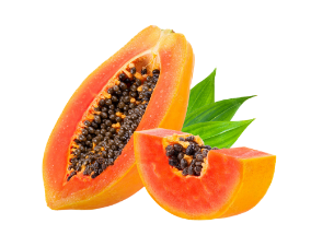 Papain ist ein Enzym, das in der Papaya-Frucht enthalten ist und Proteine spalten kann.